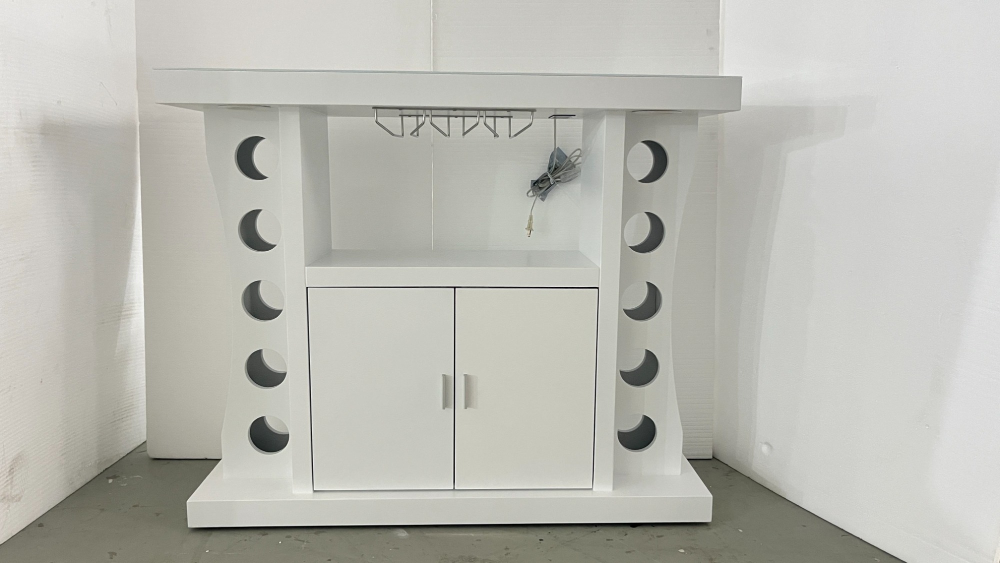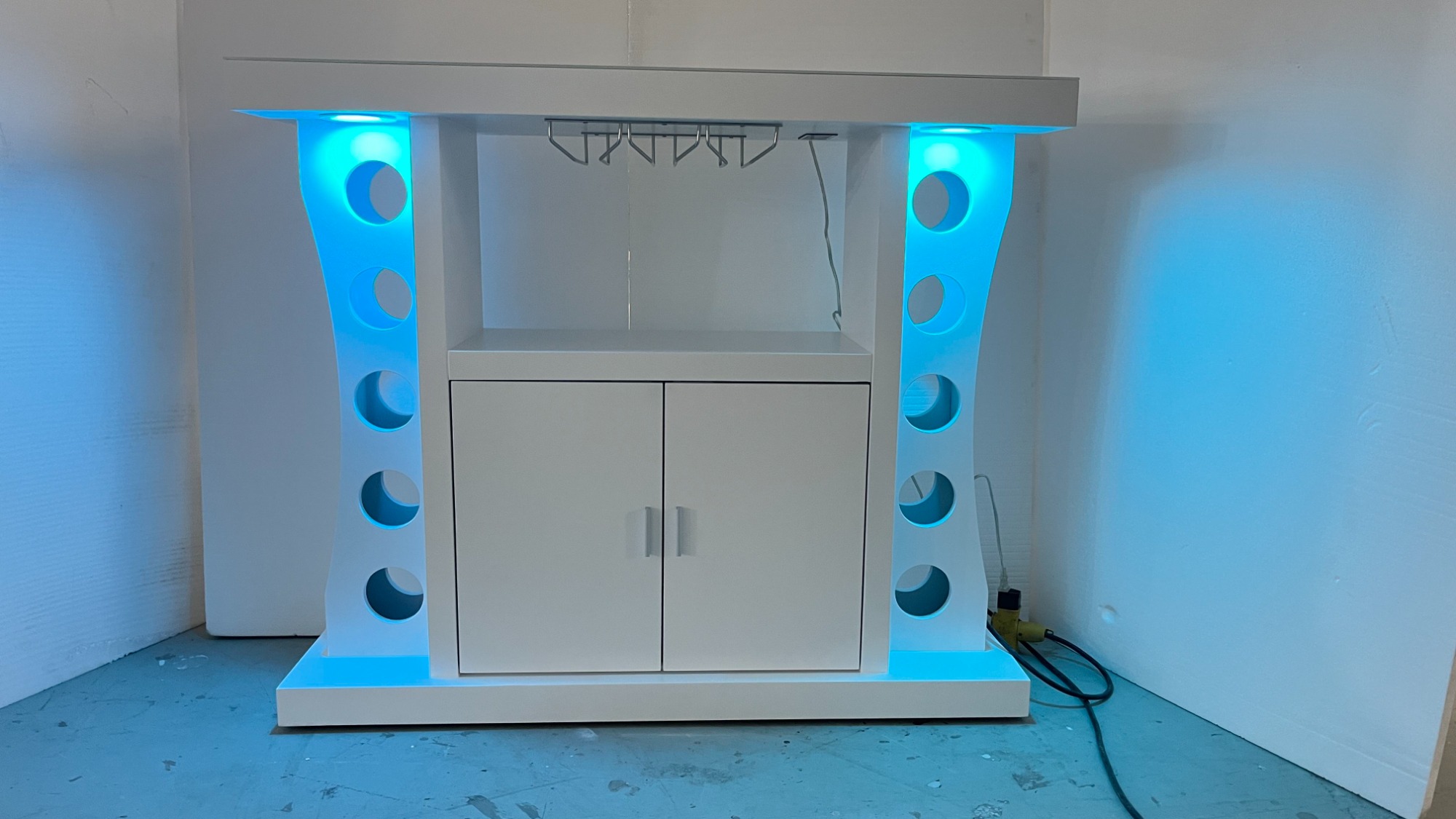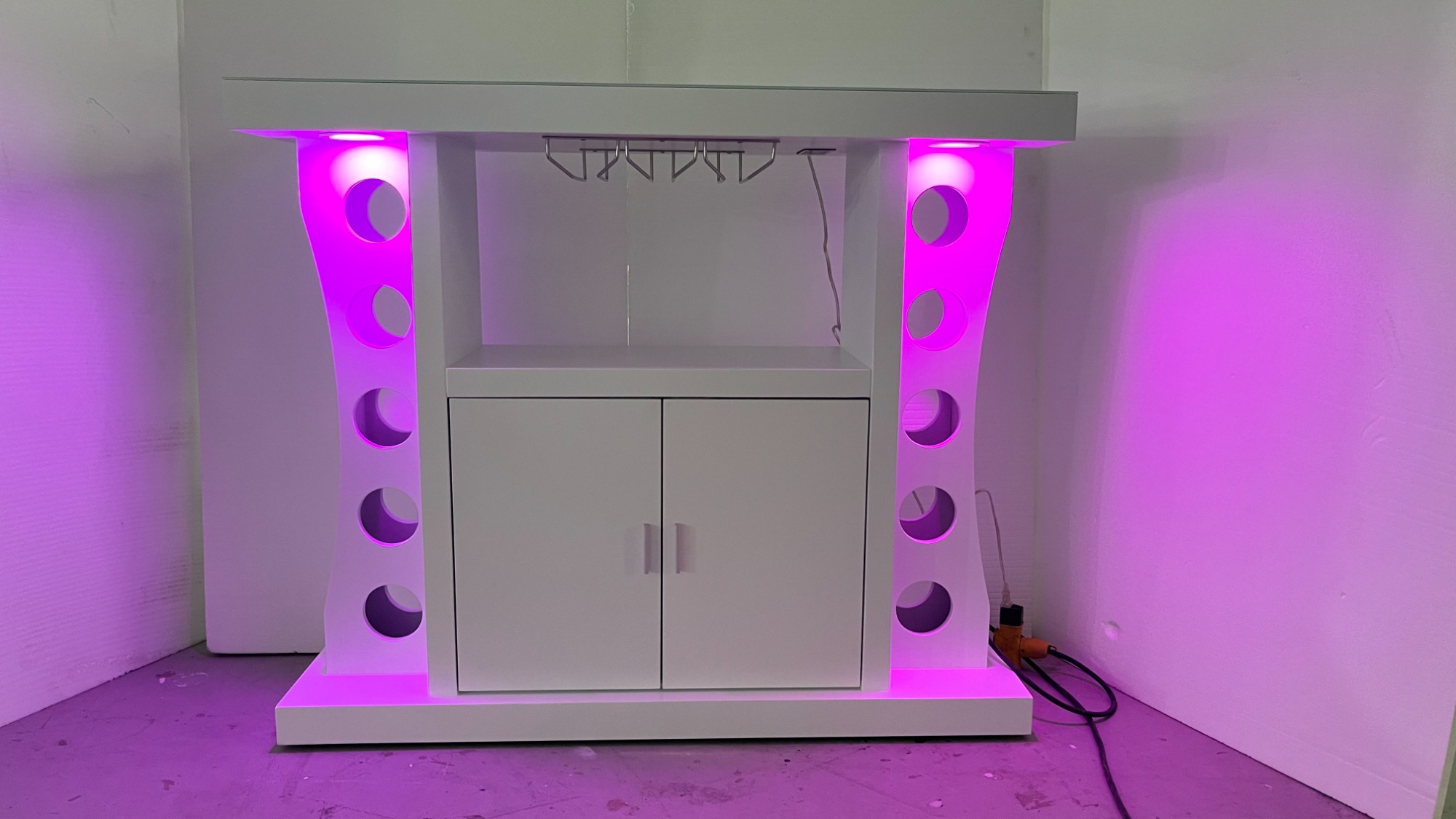 LED-Lit Modern Wine Cabinet with Glass Holder & Bottle Storage