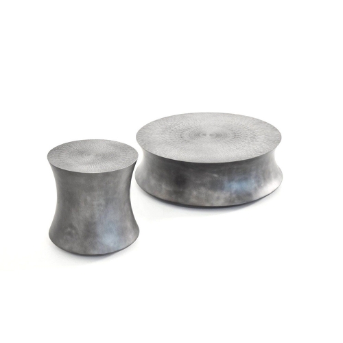 Modern Hourglass-Shaped Nesting Coffee Table Set with Brushed Metal Finish for Luxury Interiors