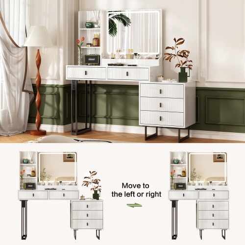 Adjustable Makeup Vanity Desk with LED Mirror and Storage Drawers