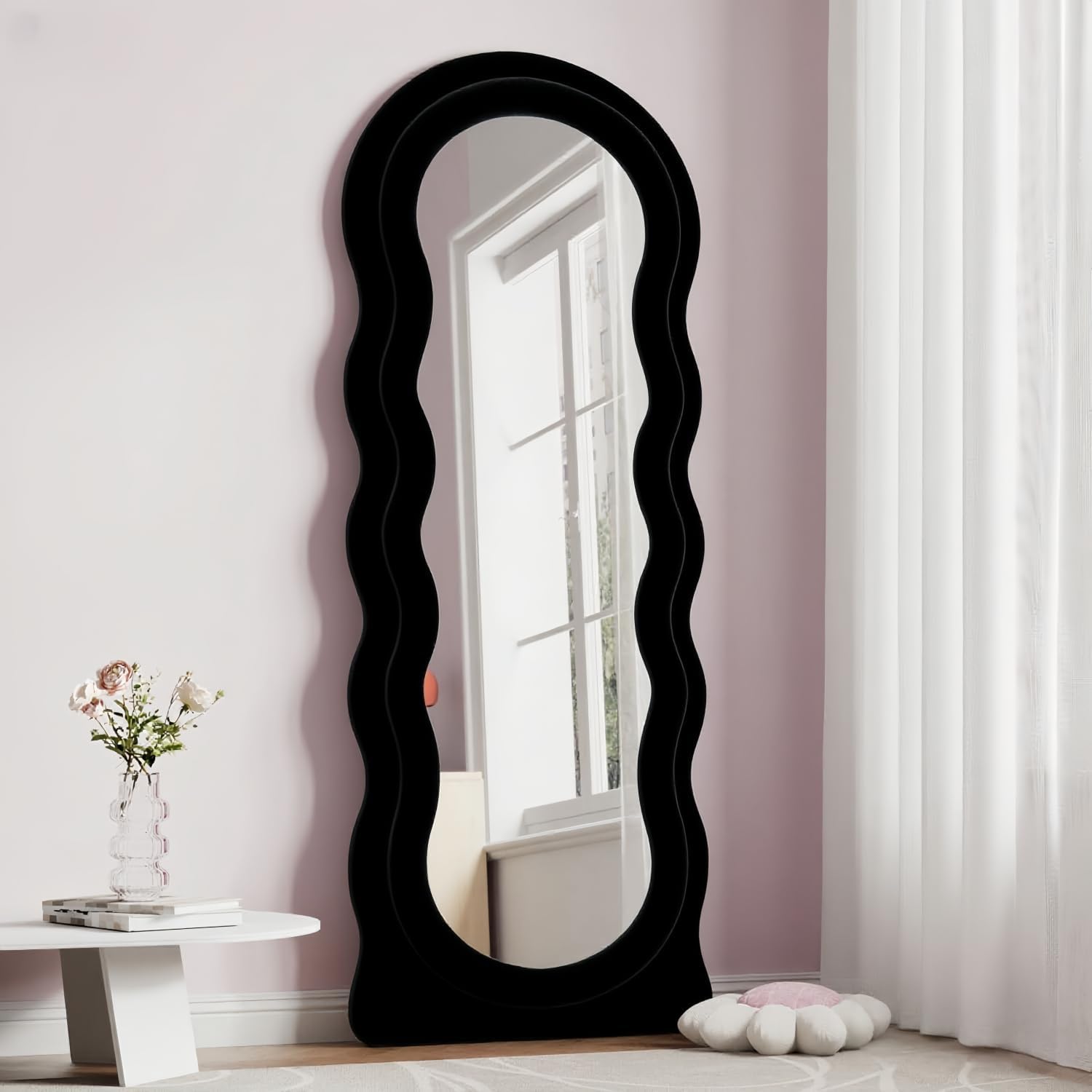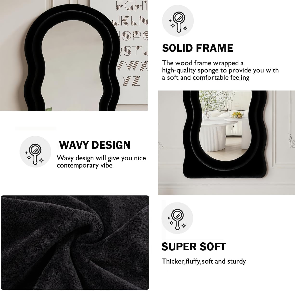 Boho Wavy Art Standing Mirror with Sponge Filled Flannel Frame for Bedroom