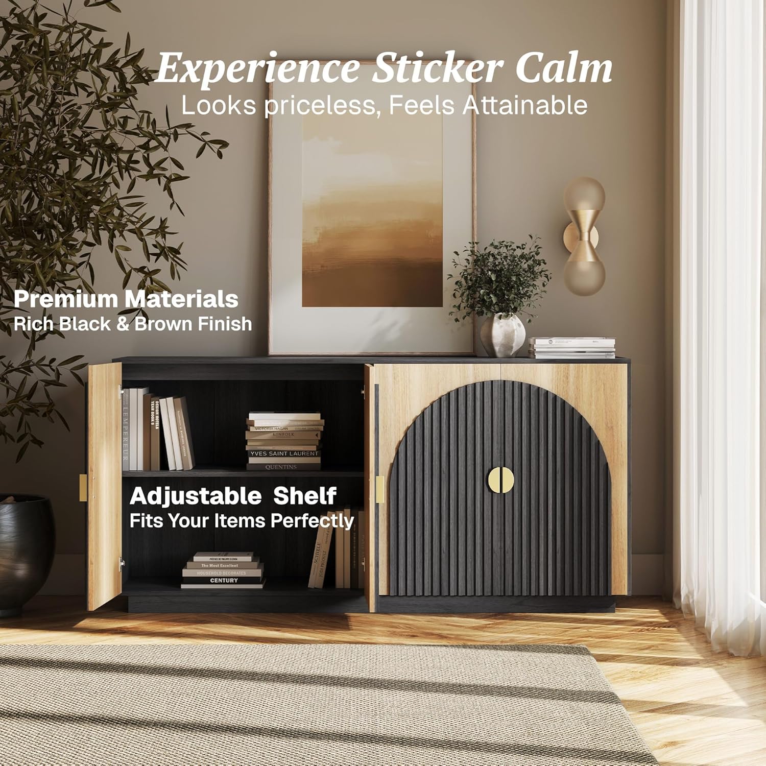 Contemporary Wooden Buffet Storage Cabinet with Arched Fluted Doors
