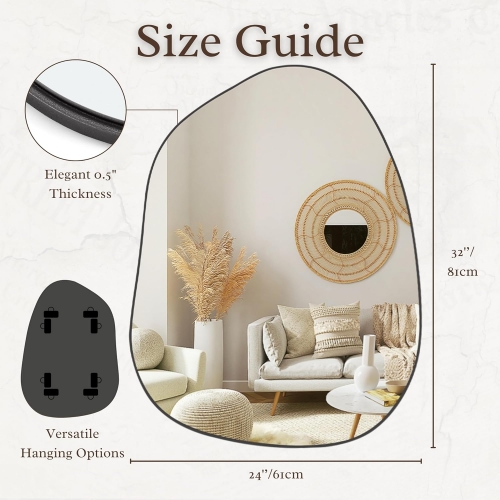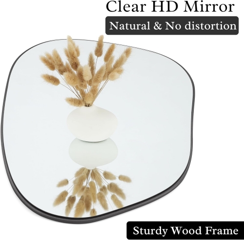 Modern Asymmetrical Black Wall Mirror with Sturdy Wood Frame for Bathroom Vanity