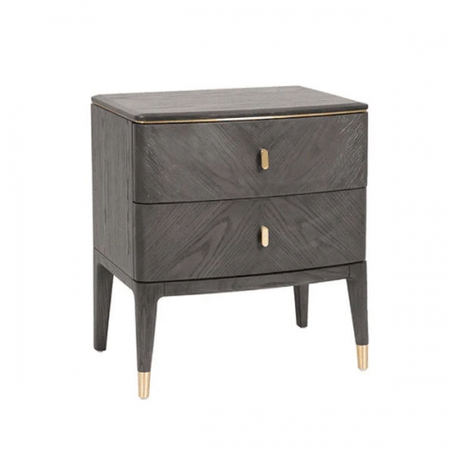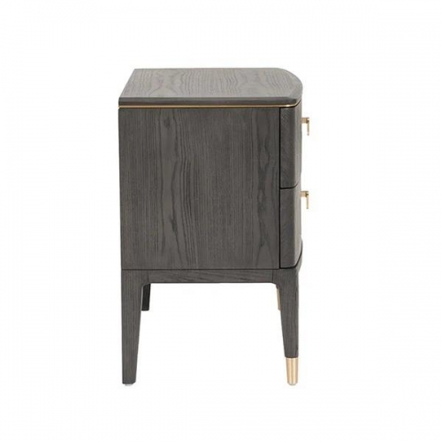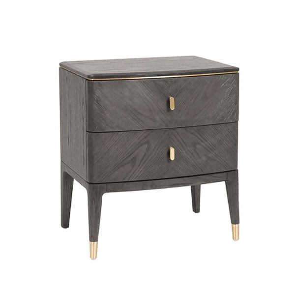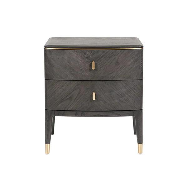 Stylish Dark Wood Nightstand Brass Handles and Gold Feet for Bedroom Decor